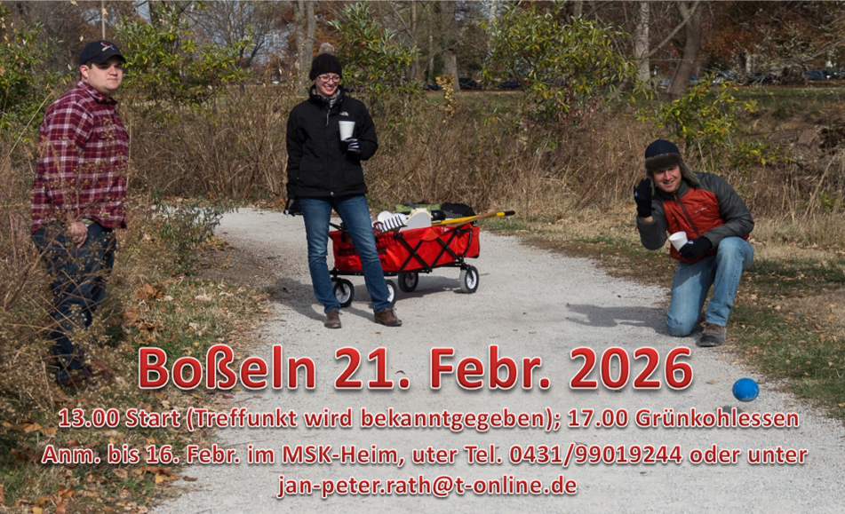 Unser alljährliches Boßelturnier findet statt am 21. Februar um 13 Uhr. Der...