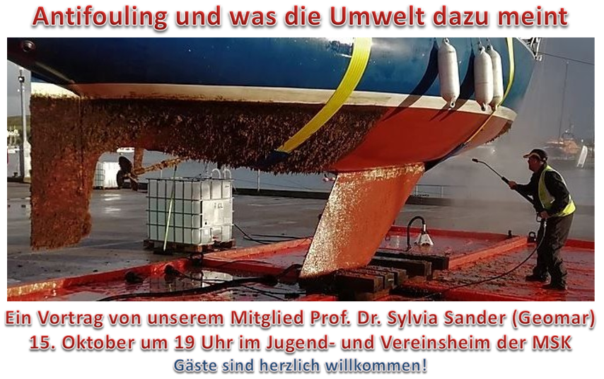 Am Mittwoch, dem 15. Oktober um 19 Uhr wird unsere Segelkameradin Sylvia Sander einen Vortrag halten über das Thema „Antifouling-Bootsanstriche und was die Umwelt daz...